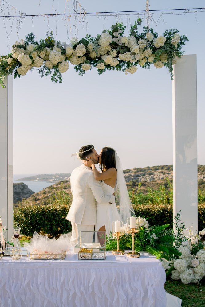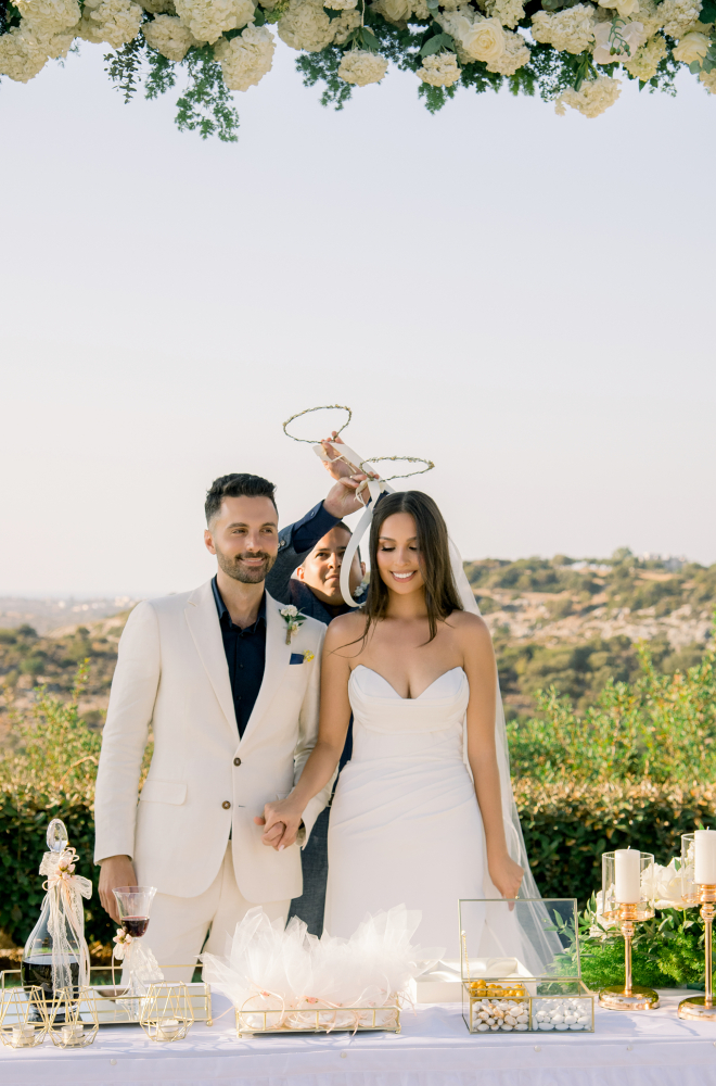 celebrating their marriage amidst the elegance of mountains and breathtaking sea views.