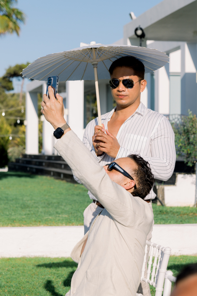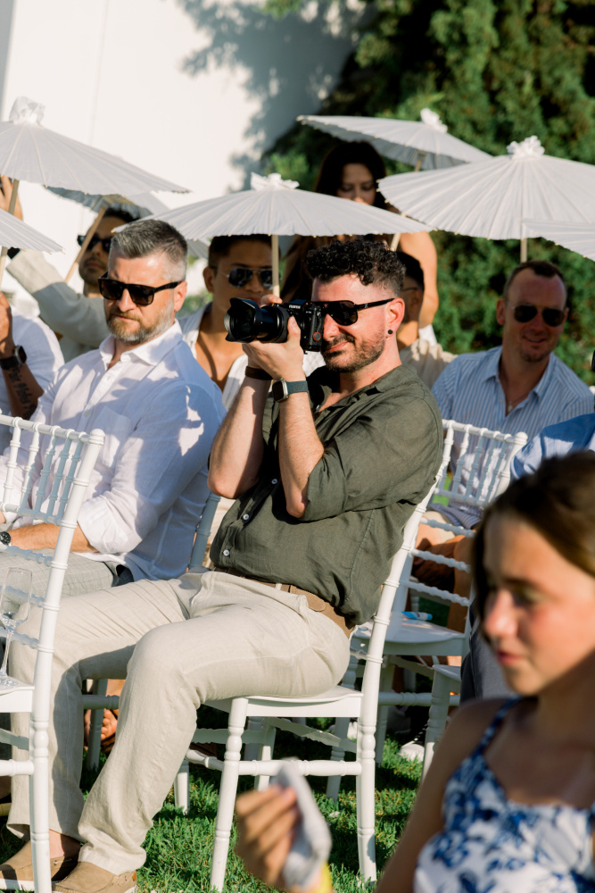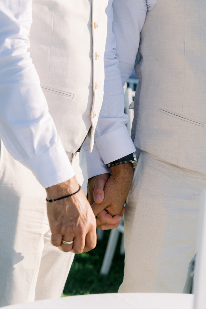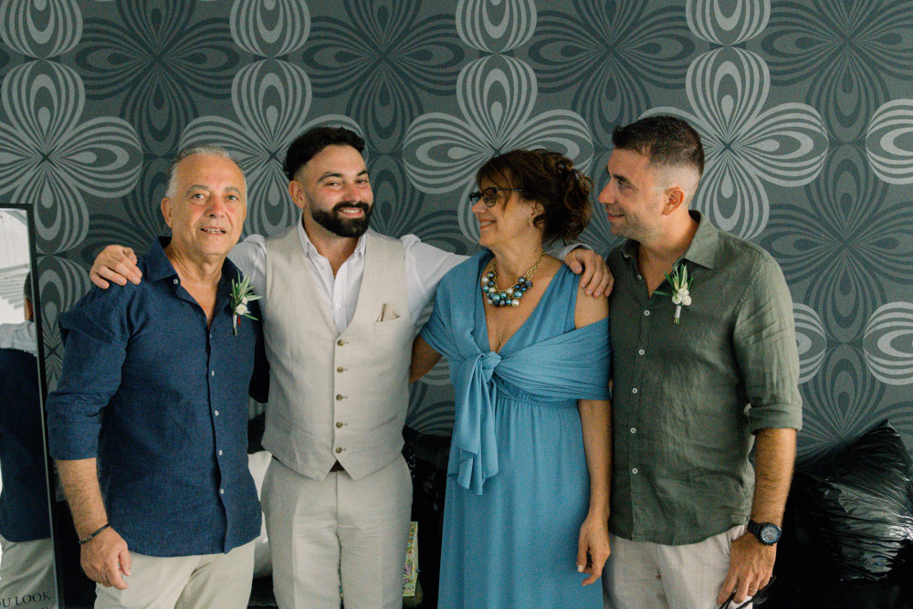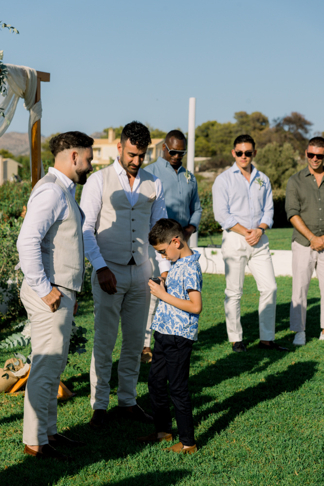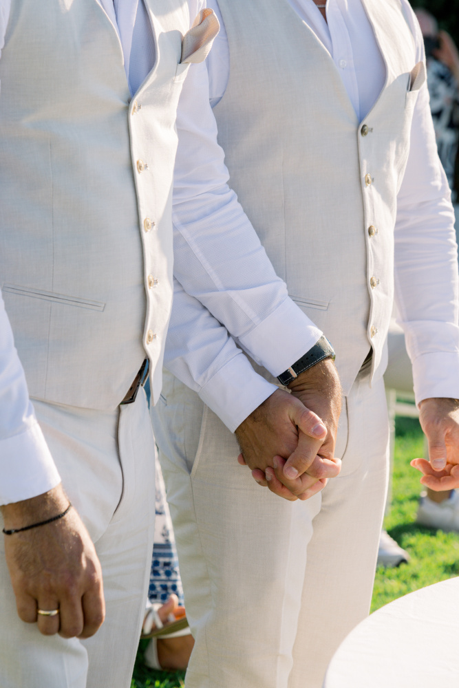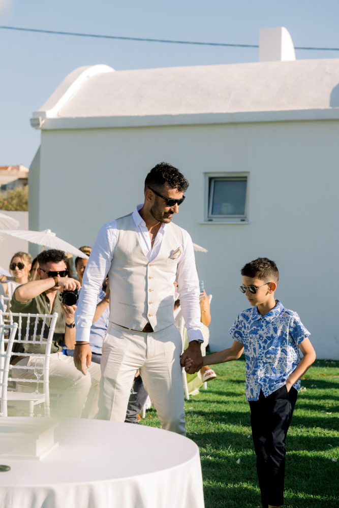 dressed in understated ivory tones, they stood hand in hand as the breeze carried gentle whispers from the shoreline. Every detail reflected a balance of simplicity and sophistication: natural textures, warm Mediterranean hues, and an atmosphere that felt both intimate and effortlessly refined.