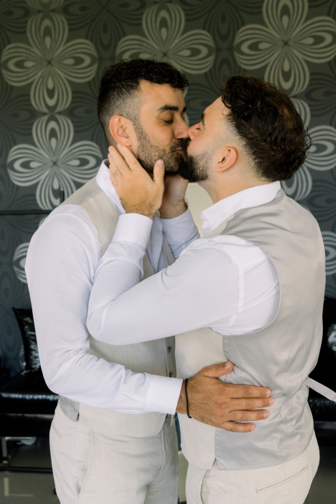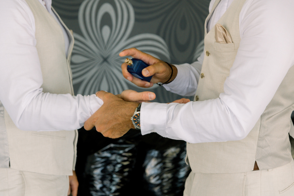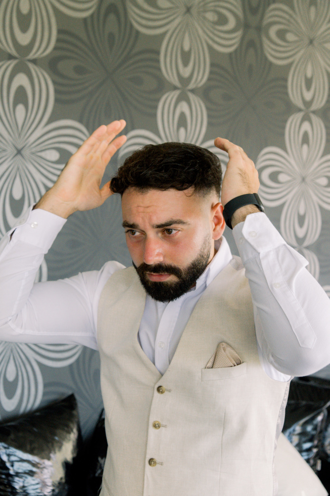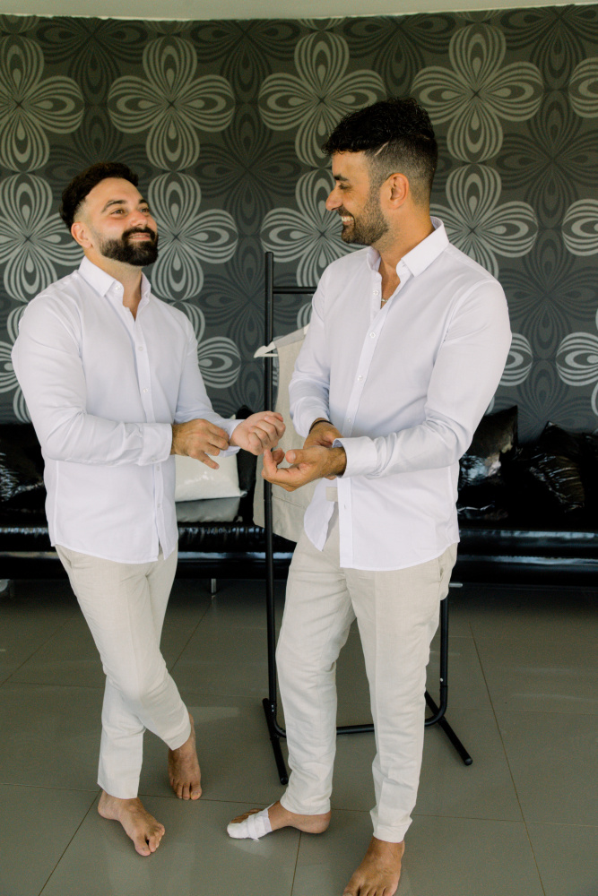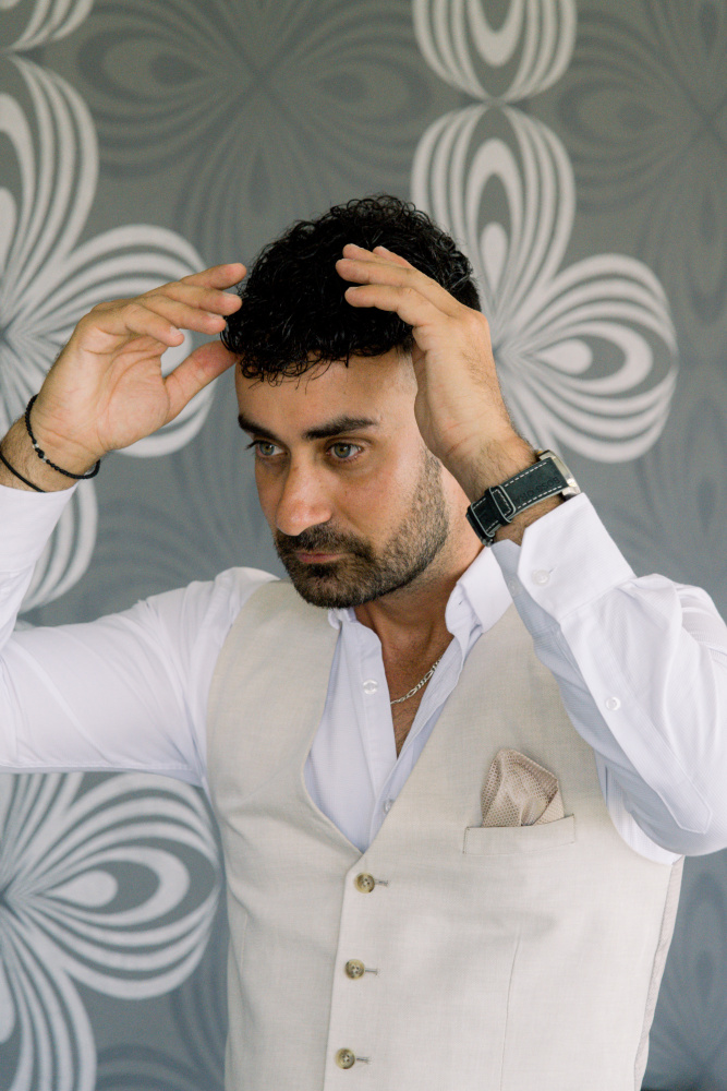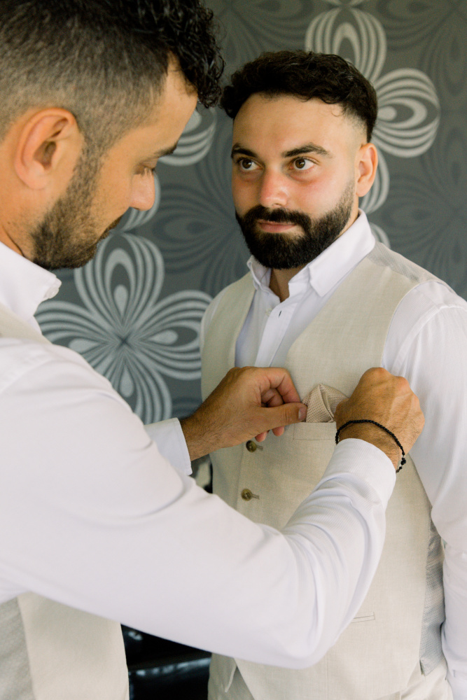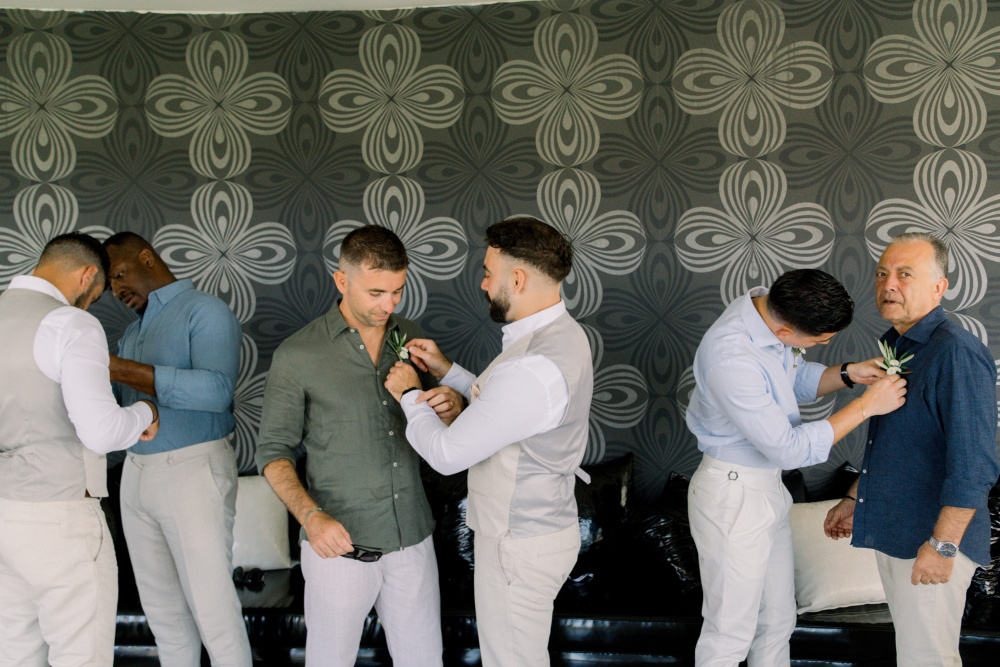 dressed in understated ivory tones, they stood hand in hand as the breeze carried gentle whispers from the shoreline. Every detail reflected a balance of simplicity and sophistication: natural textures, warm Mediterranean hues, and an atmosphere that felt both intimate and effortlessly refined.