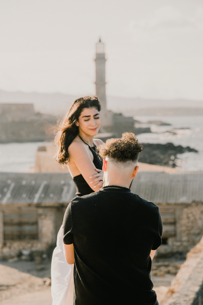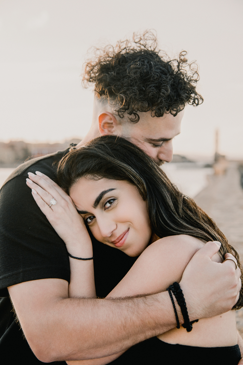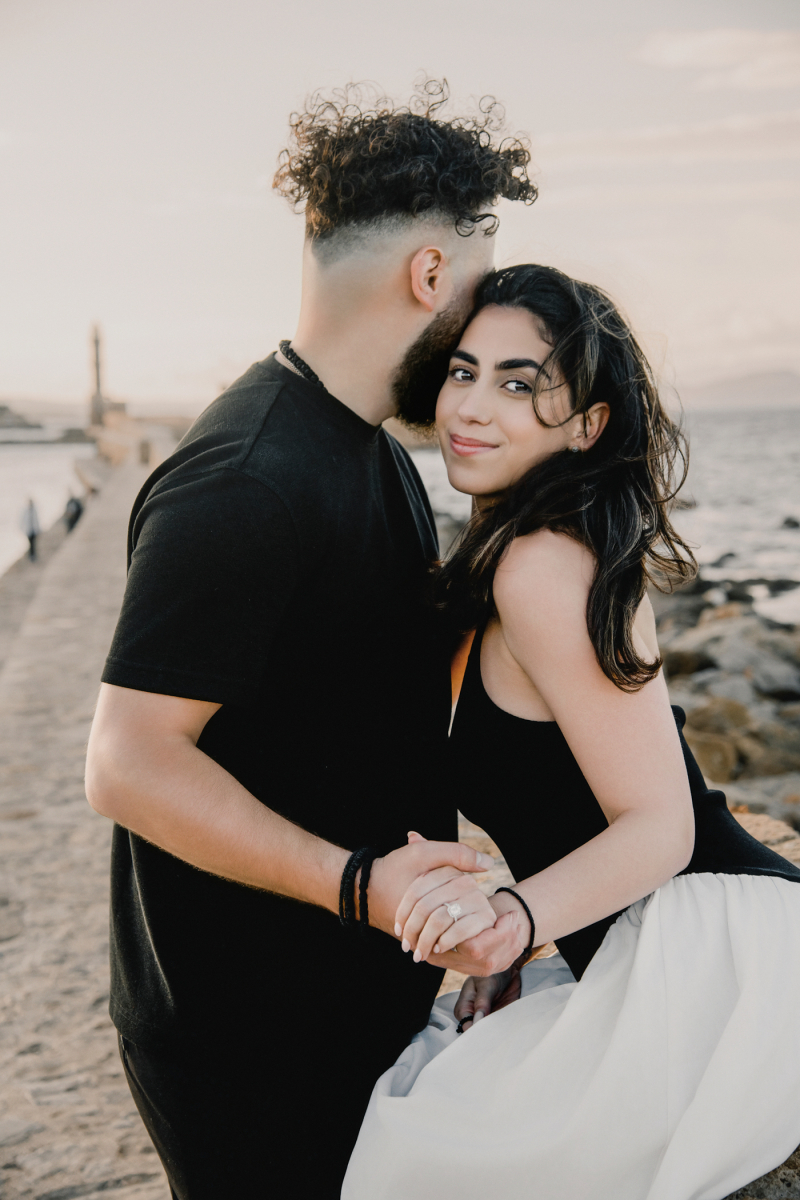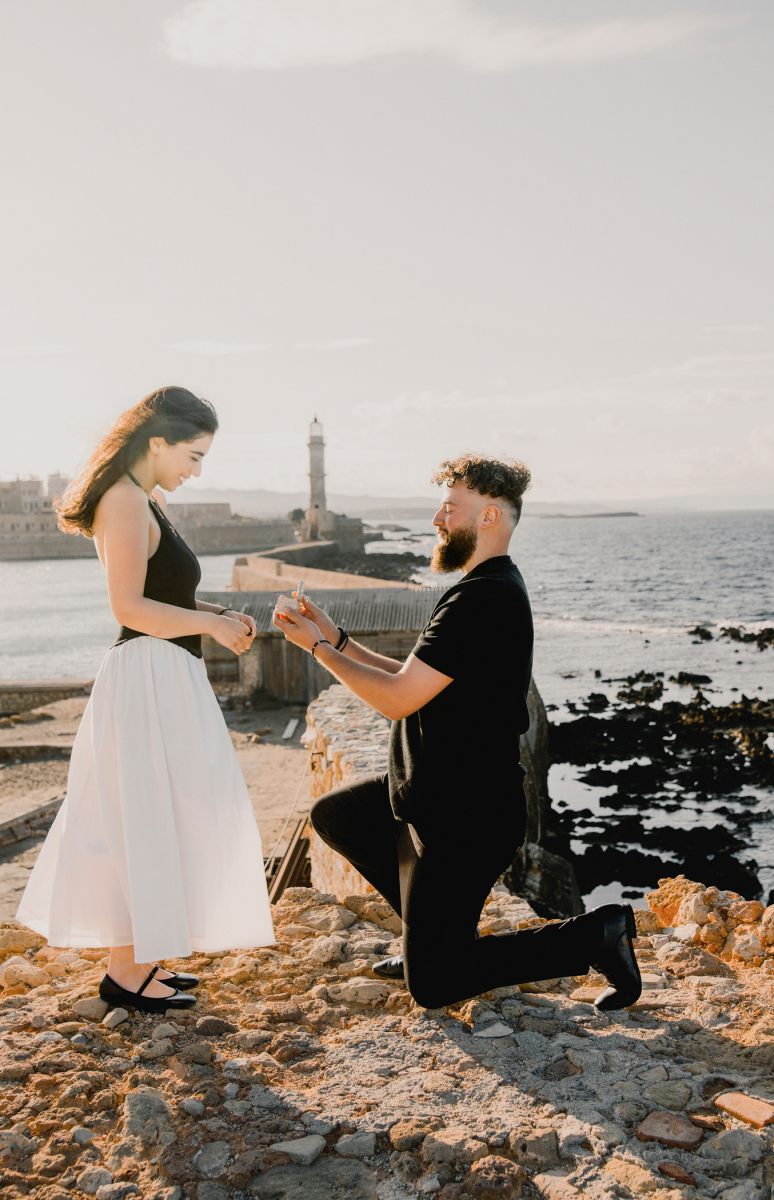 Nestled against the timeless charm of the Chania lighthouse, Kresh thought she was simply enjoying an evening stroll with her fiancé, surrounded by the soft whispers of the sea and the golden hues of the setting sun. Little did she know, this moment was destined to become the beginning of forever.