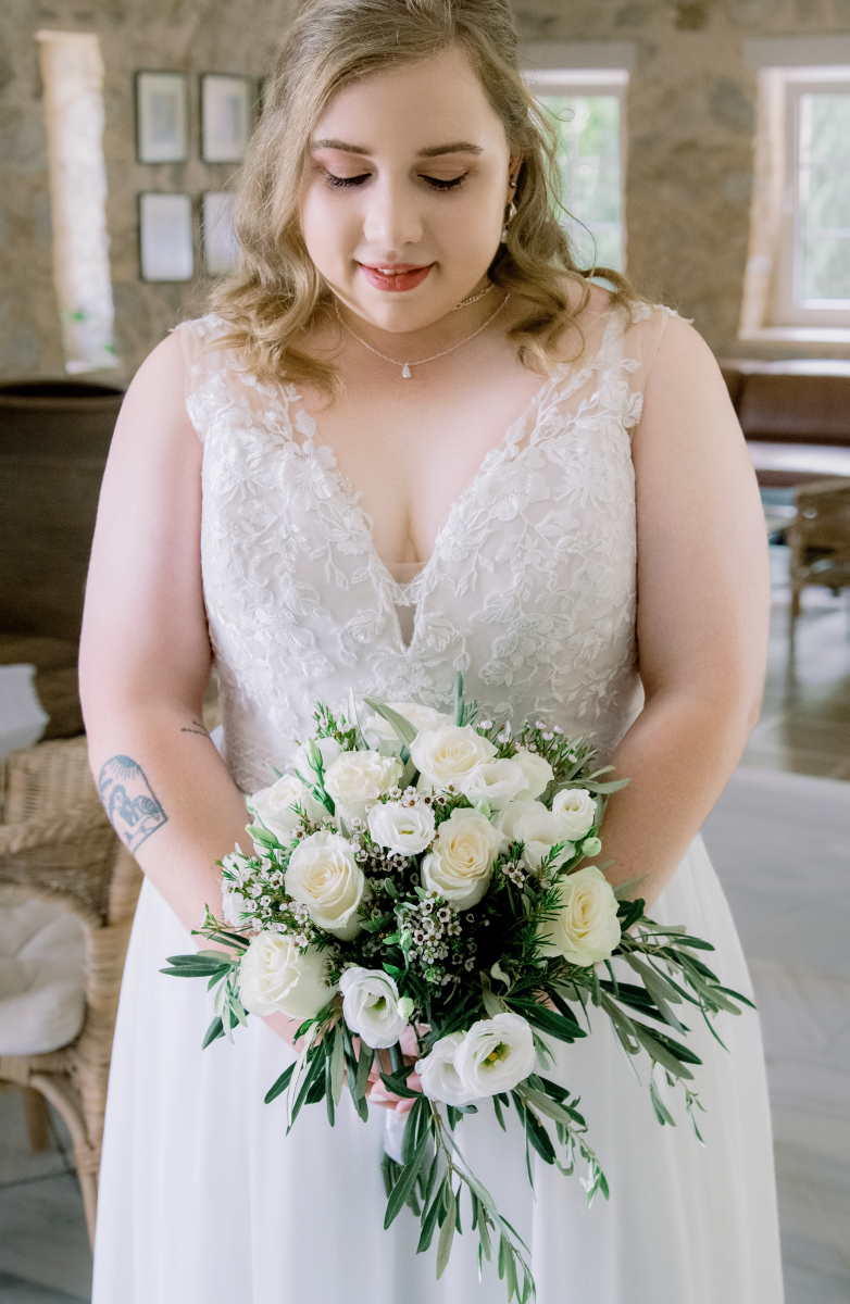 “As the golden sunlight filters through the vineyard, the bride gracefully weaves her way through the lush grapevines,